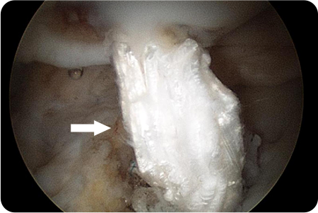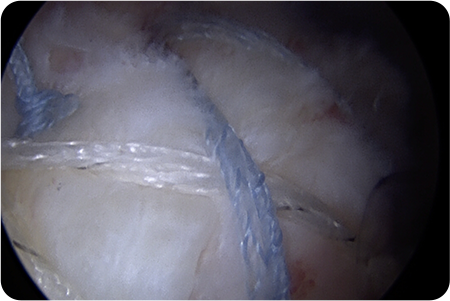 관절경을 어깨 관절에 삽입해 파열된 힘줄과