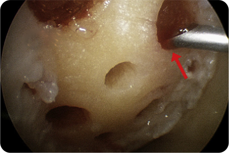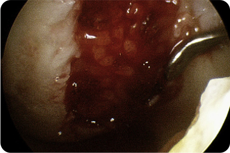 이식할 부위를 준비하고, 연골에 작은 구멍을 내어